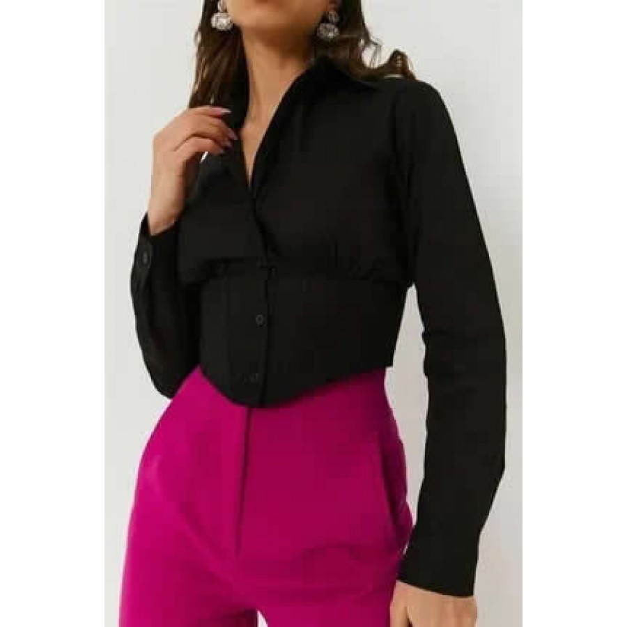 Kadın Siyah Degaje Yaka Askılı Bluz zlm568987